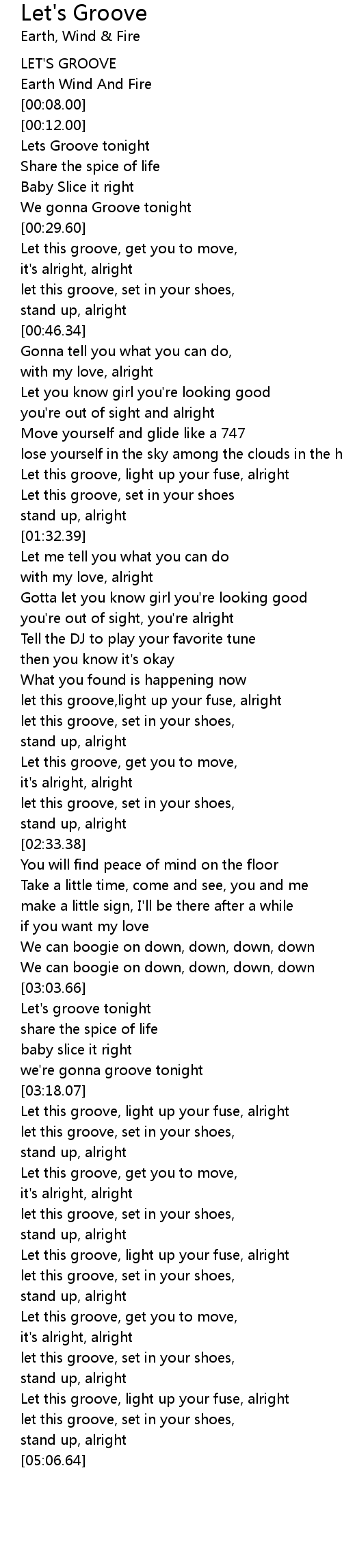 No presentation no applauseJai remixé ce vidéo pour avoir le meilleur son pos. Ooh oh sucky sucky now Hey ooh come on baby Hey there sugar dumpling Let me tell you something Boy Ive been trying to say now You look so sweet and youre so. Pre-Chorus Lets groove tonight down down upon down Share the spice of life The boogie sound down upon down Baby slice it right The boogie sound down upon down Were gonna groove tonight The boogie sound down upon down Chorus Let this groove get you to move Its alright alright alright Let this groove set in your shoes So stand up alright alright.